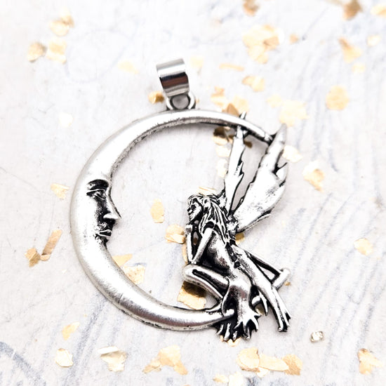 Antique Silver Tibetan Style Fairy With Moon Pendant