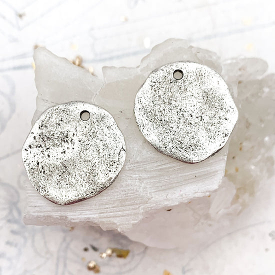 Antique Silver Organic Circle Charm Pair