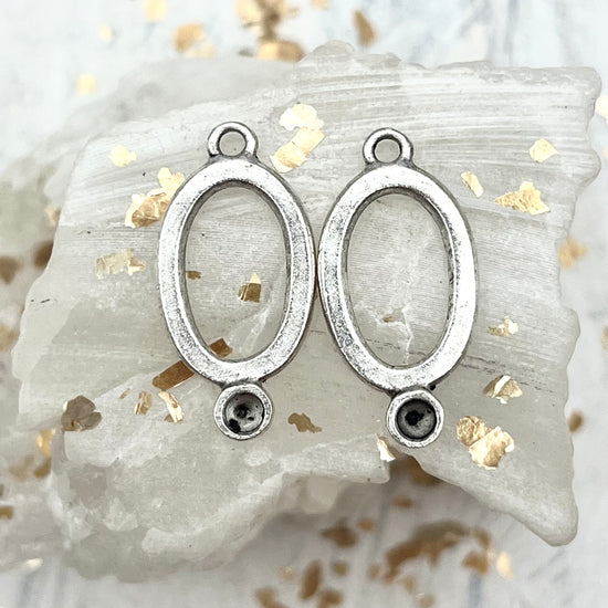 Antique Silver Small Oval Drop Bezels