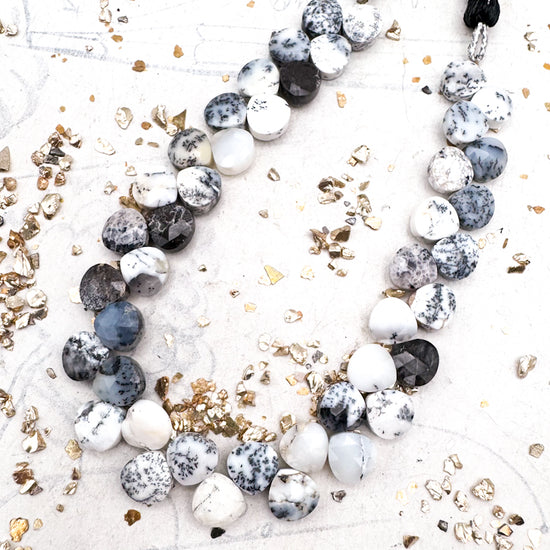 Dendritic Opal Gemstone Teardrop Bead Strand