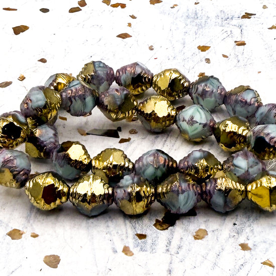 10x8mm Faceted Bicone Spring Green with Gold and Bronze Finishes Bead Strand