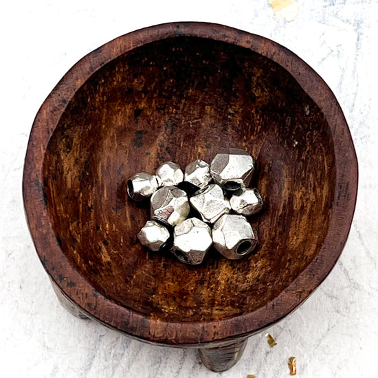 Mixed Antique Silver Faceted Round Metal Bead Set