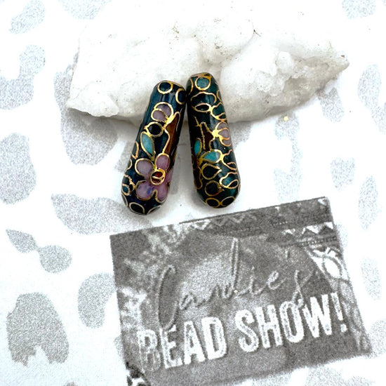 Navy Blue Cloisonne Drop Bead Pair - Tucson Find