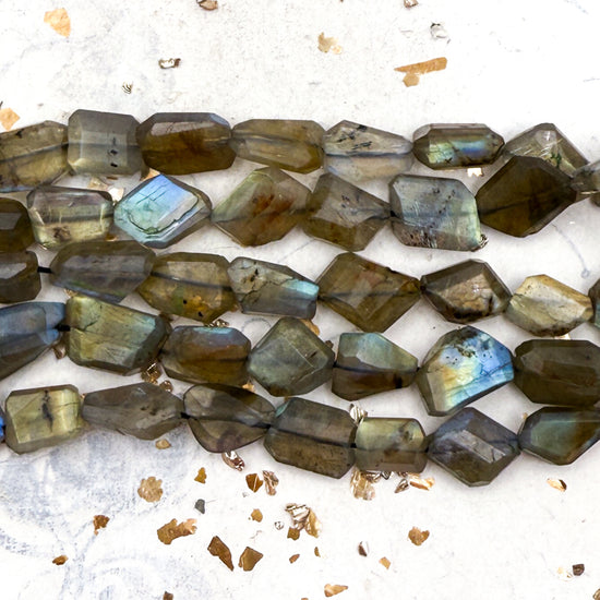 Pre-Order Octagon Nugget Labradorite Bead Strand-E