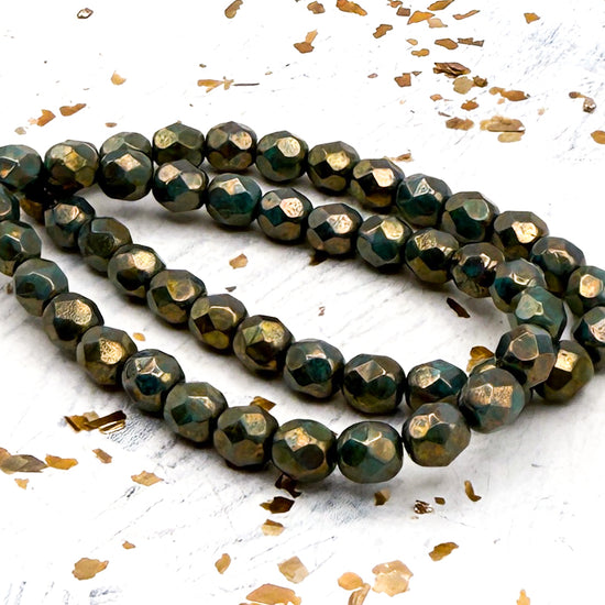 Pre-Order 6mm Green Bronze Faceted Round Fire-Polished Bead Strand