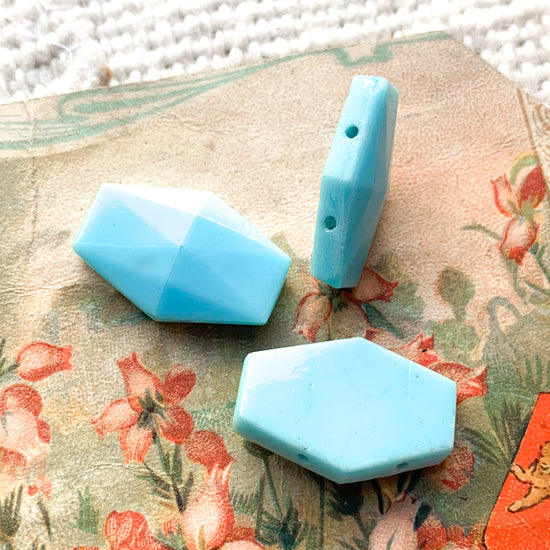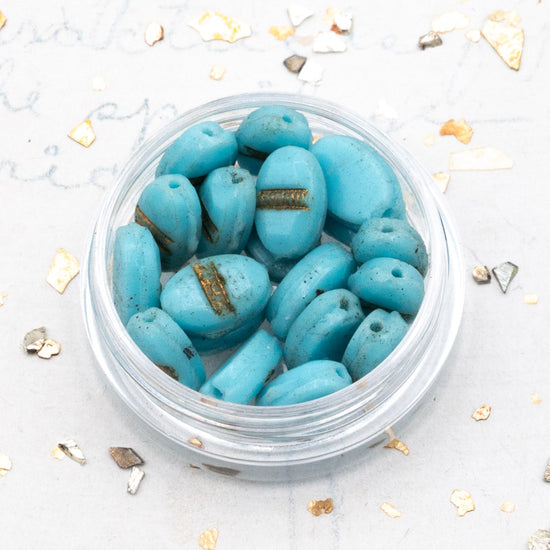 Two Hole Turquoise Vintage Glass Bead - Paris Find