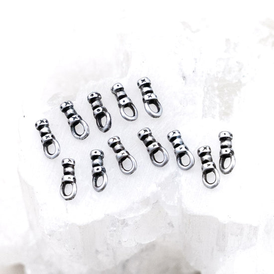 1mm Antique Silver Crimp End with Loop for Leather - 12pcs
