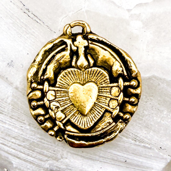 Antique Gold Immaculate Heart of Seven 7 Sorrows Pendant