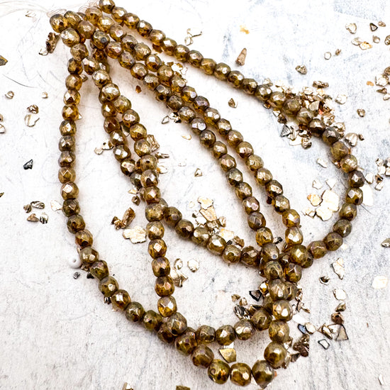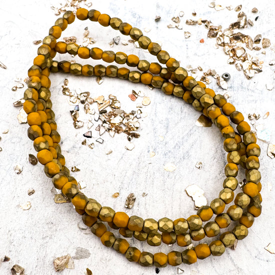 3mm Faceted Round Firepolished Bead Yellow Gold with Etched and Gold Finishes
