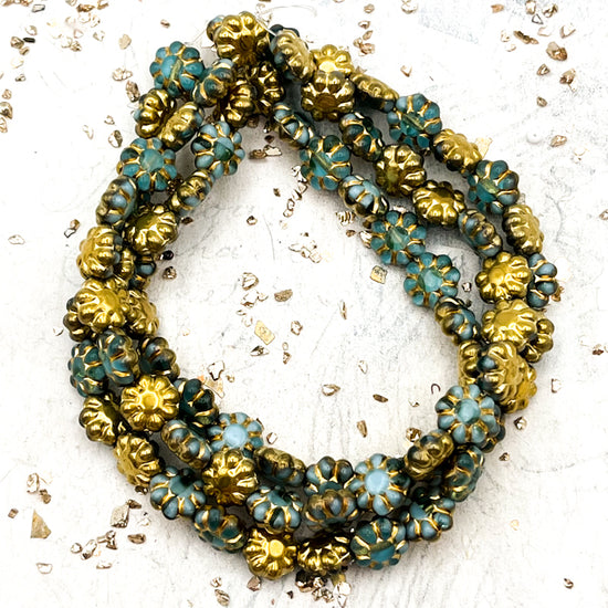 Pre-Order 9mm Cactus Flower Sea Green and Sky Blue with Bronze Finish