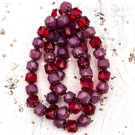 6mm Cathedral Bead Mix Ruby Red and Dusty Rose with Bronze Finish
