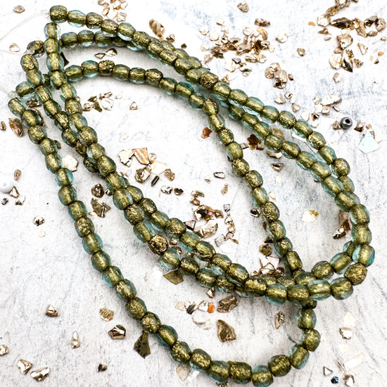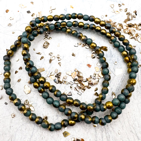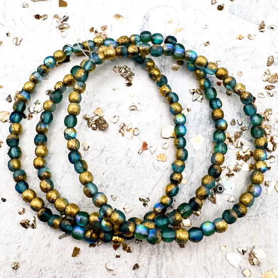 3mm Round Druk Teal With A Gold Finish
