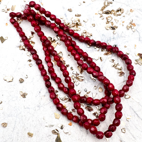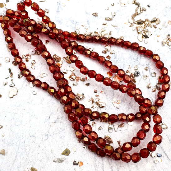 3mm Faceted Round Firepolished Bead Ruby Red With Gold Finish