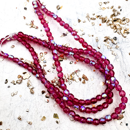 3mm Faceted Round Firepolished Bead Fuchsia with AB Finish