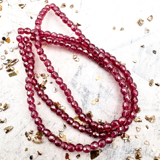 3mm Faceted Round Firepolished Bead Maroon Strand