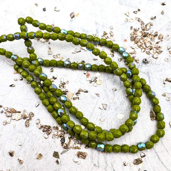 3mm Faceted Round Firepolished Bead Avocado with AB Finish