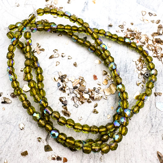 3mm Faceted Round Firepolished Bead Avocado with AB...