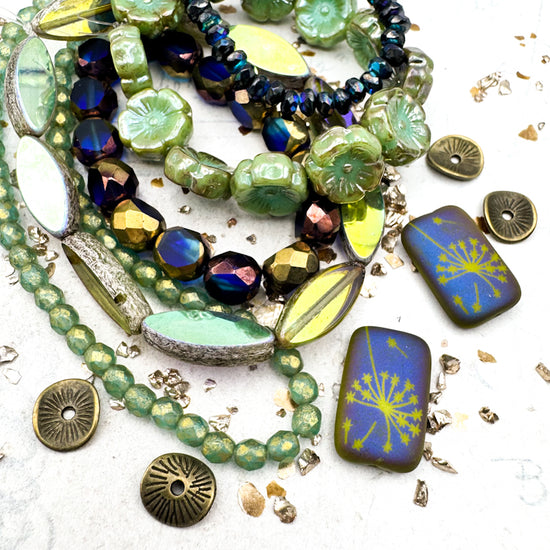Citrus Green with Blue AB Foiled Crystal Set - 5pcs