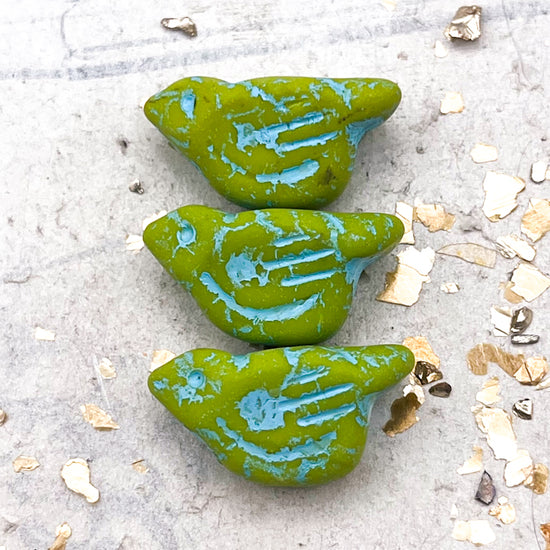 11x22mm Bird Matte Emerald with Volcano Wash