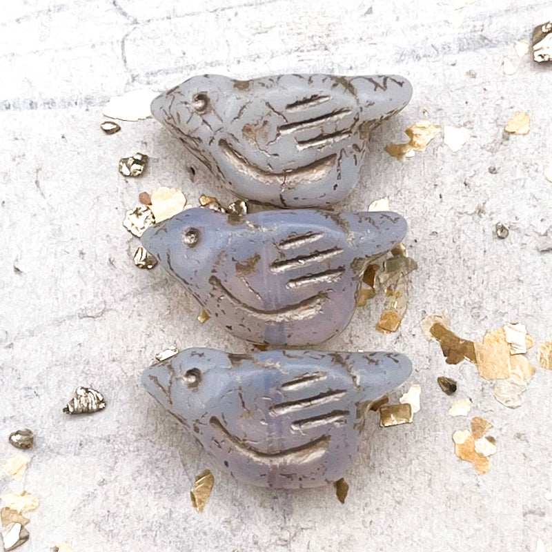 Pre-Order 11x22mm Bird White with Metallic Beige Wash