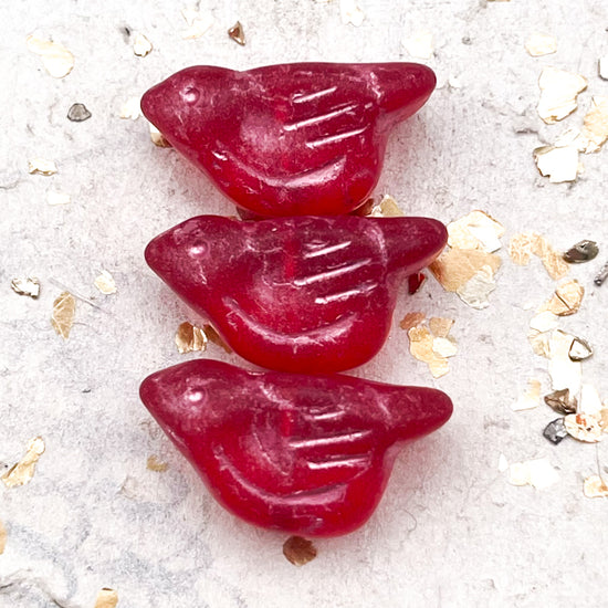 Pre-Order 11x22mm Bird Ruby Red with a Matte Finish and a Metallic Pink Wash