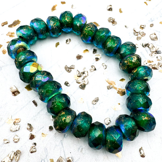 4x8 Heishi Peridot with Etched and Gold Finishes