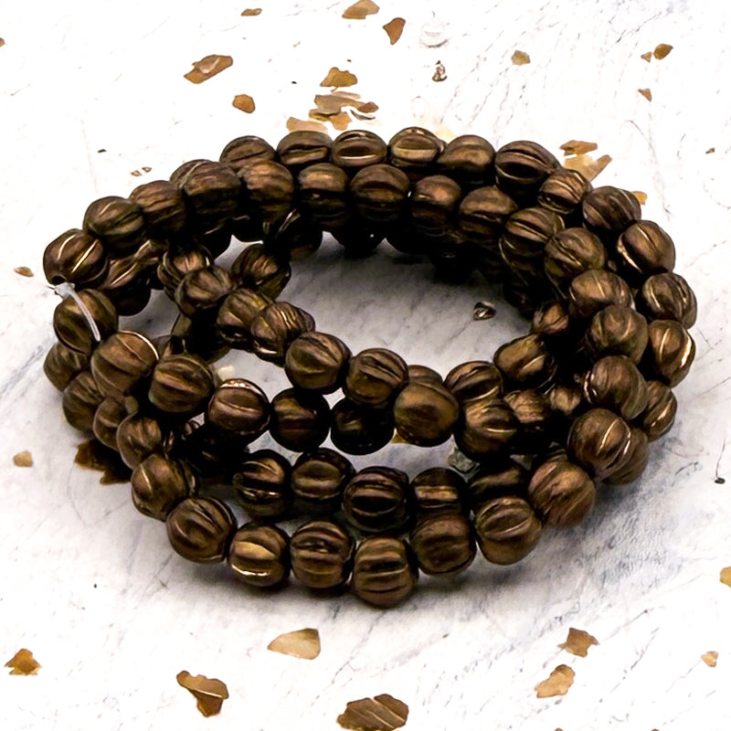 Pre-Order 4mm Melon Alloy Orange with Brown Wash Bead Strand