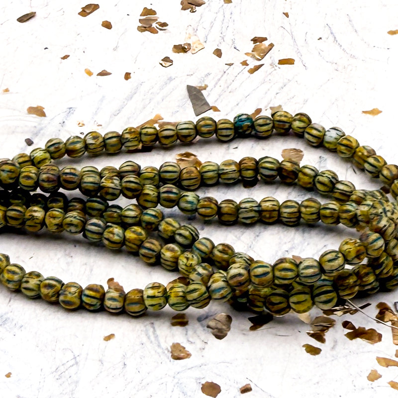 3mm Melon Sea Green with Picasso Finish Bead Strand