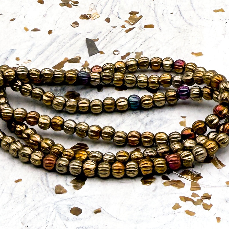 Pre-Order 3mm Melon Cornflower with an Etched Gold Finish Bead Strand