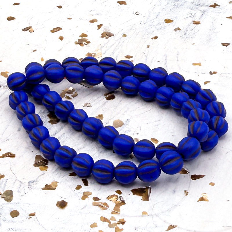 Pre-Order 3mm Melon Matte Indigo with Brown Wash Bead Strand