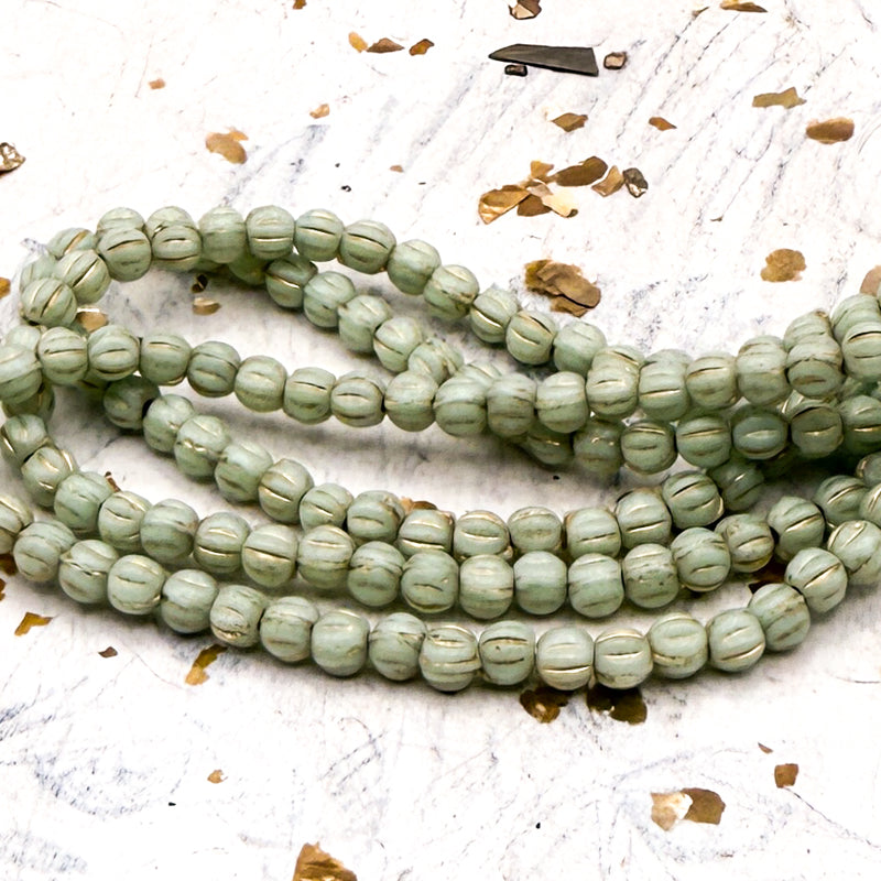 5mm Melon Matte Sea Green with Brown Wash Bead Strand