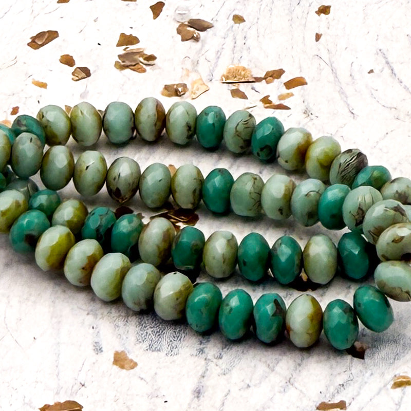 3x5mm Rondelle Tea Green Mix with Picasso Finish Bead Strand