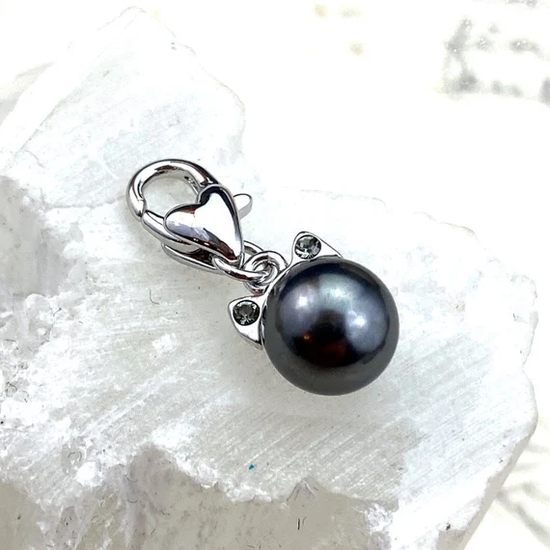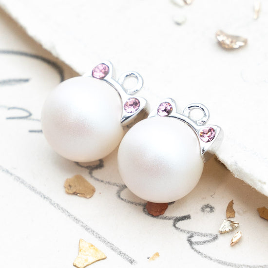 Little Premium Austrian Crystal Pearl Cat Charm