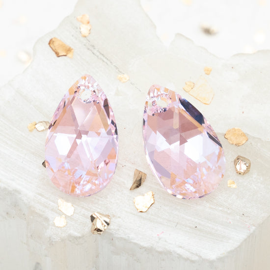 Discontinued! - 16mm Rosaline Shimmer Pear-Shaped Premium Crystal Pendant Pair