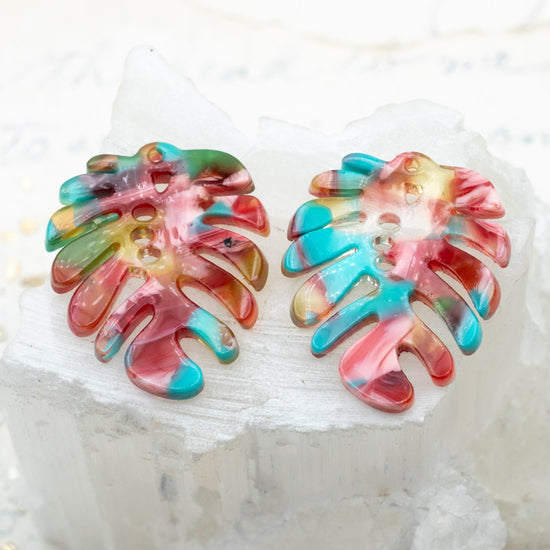 26mm Multi-Color Monstera Leaf Acetate Earring Pendant Pair