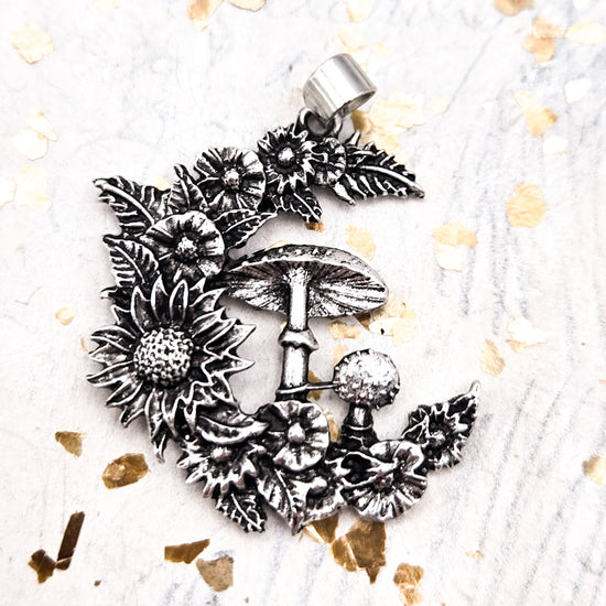 Antique Silver Flower & Mushroom Pendant