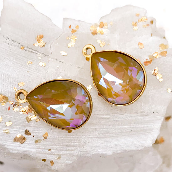 14x10mm Ochre Delite Pear Fancy Stone Premium Crystal and Brass Setting with Loop Pair