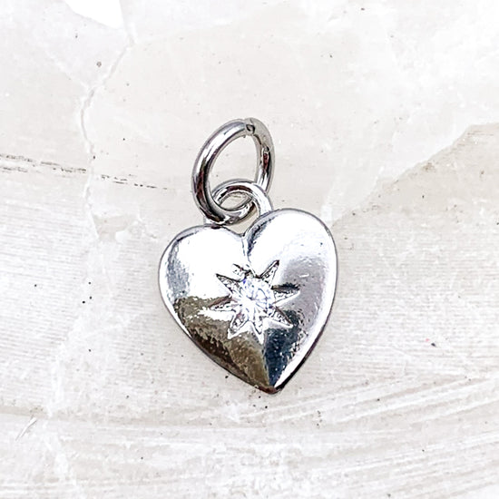 Platinum Plated Rhinestone Heart Charm