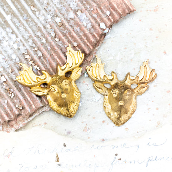 Stag Head Solid Brass Charm Pair - No Holes