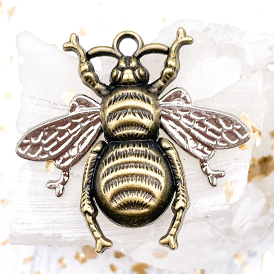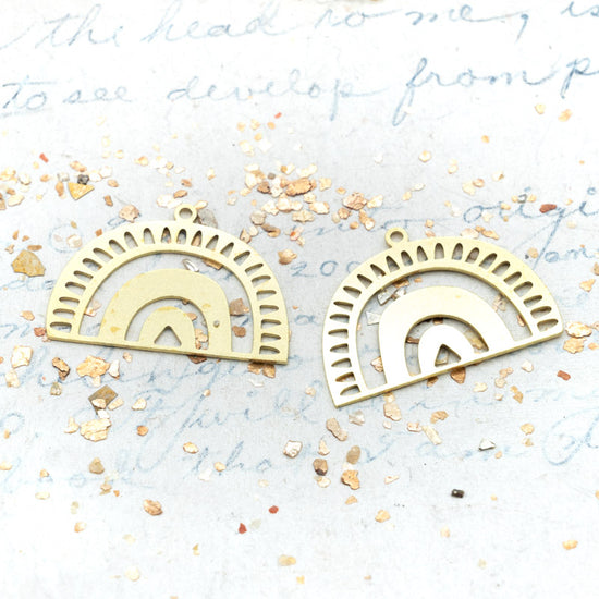 Large Eclectic Rainbow Brass Bead Frame Charm Pair