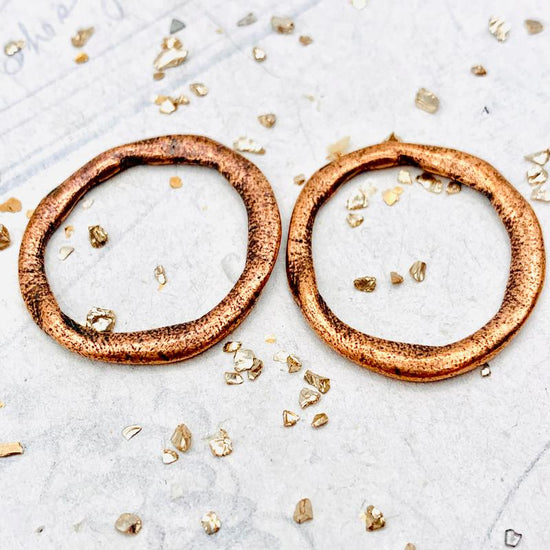 50mm Antique Copper Large Hammered Flat Hoop Pair