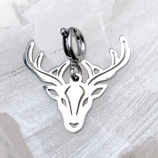 Rhodium Stag's Head with Spring Clasp - Paris Find