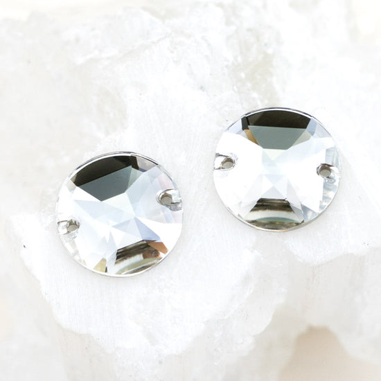 14mm Silver Shade Classic Round Premium Crystal Link Pair