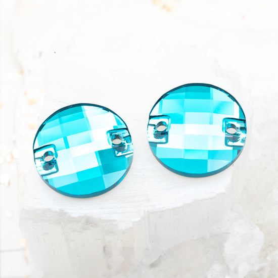 20mm Blue Zircon Round Checkerboard Premium Crystal Link Pair