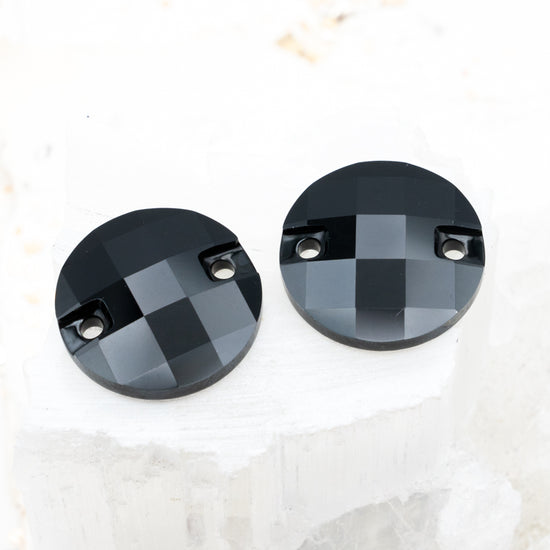 20mm Jet Round Checkerboard Premium Crystal Link Pair