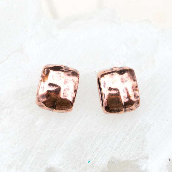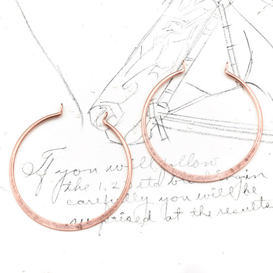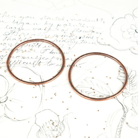 50mm Antique Copper Large Hammered Flat Hoop Pair