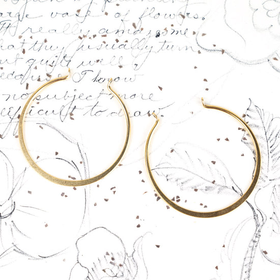 50mm Antique Gold Large Hammered Flat Hoop Pair