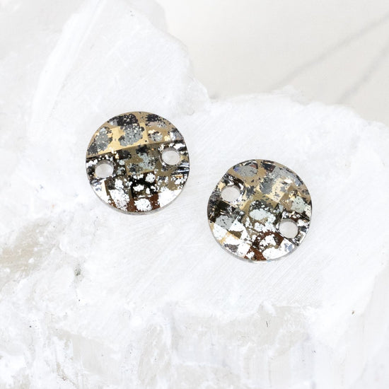 10mm Silver Patina Round Checkerboard Premium Crystal Link Pair