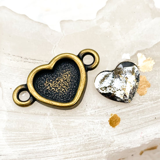 Gold Patina and Brass Premium Austrian Crystal Heart Link