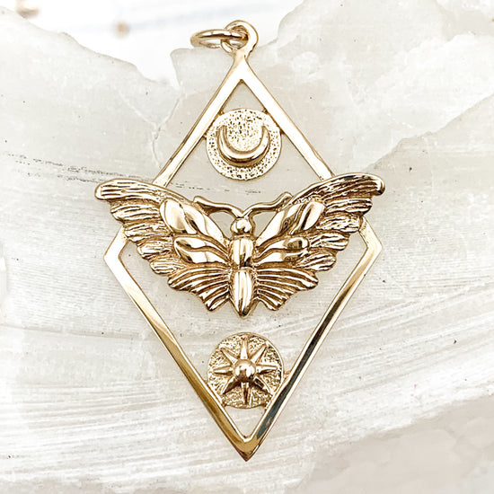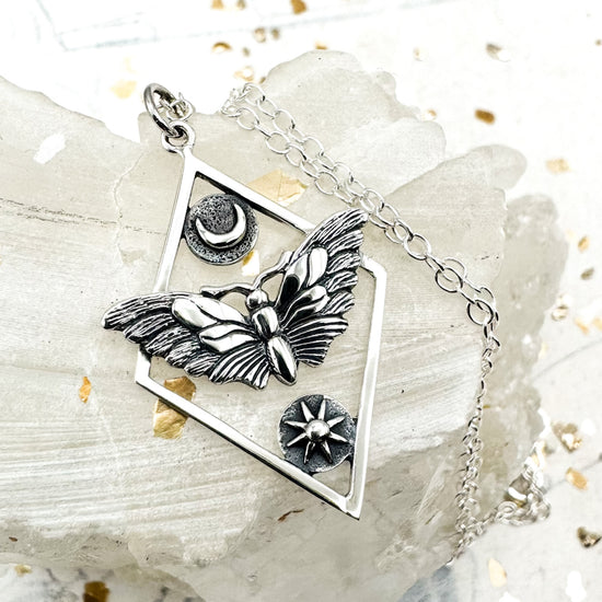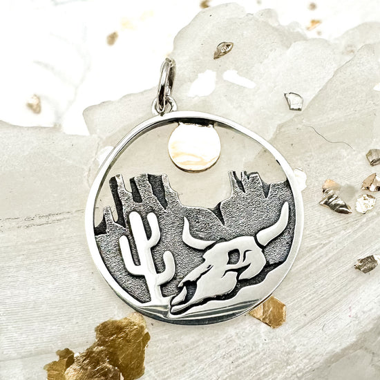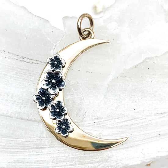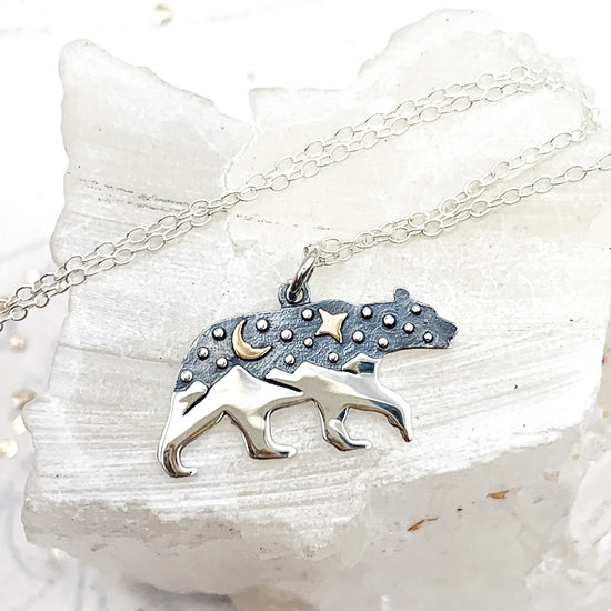 Sterling Silver Bear Charm with Bronze Moon Necklace
